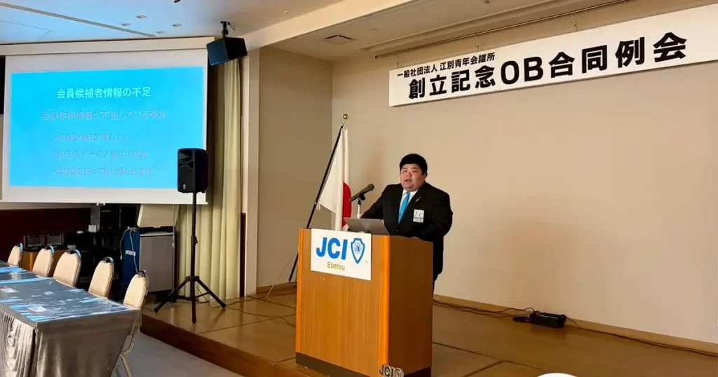 そこで、OBと現役が共に創立を祝い、現在の江別JCの姿を知っていただく機会として「創立記念OB合同例会」を開催いたしました。