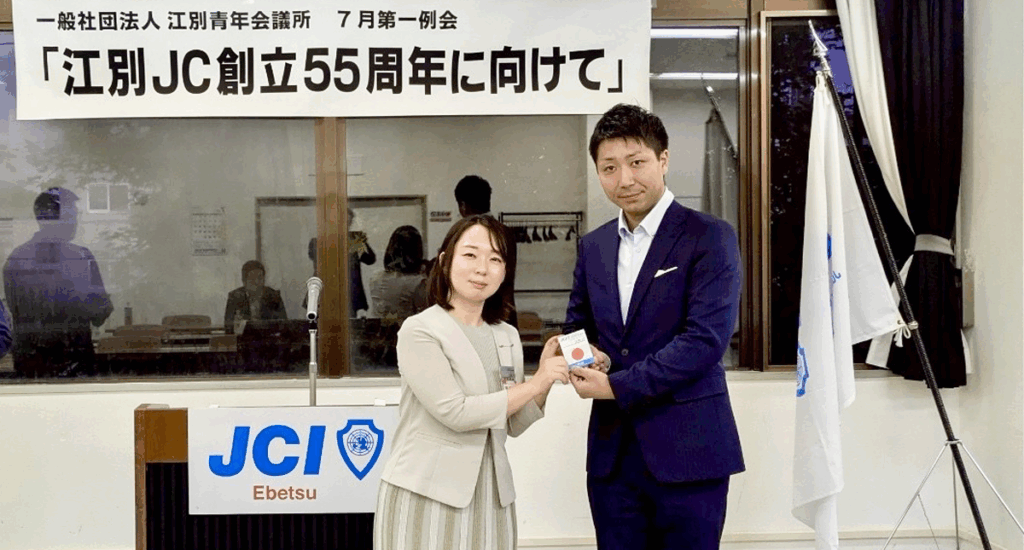 山岸君には今後、江別青年会議所の活動を通じて地域社会の発展に貢献していただくとともに、会員相互の研鑽と親睦を深めていただきたく思います。