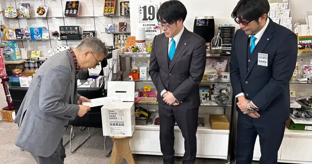 皆様からいただいた募金は、2月19日に大麻銀座商店街へお届けいたしました。
